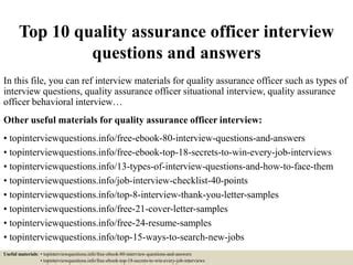 Download Quality Control Officer Interview Question Answer Reader online is a convenient and frugal way to read Quality Control Officer Interview Question Answer you love right from the comfort of your own home. Yes, there sites where you can get Reader "for free" but the ones listed below are clean from viruses and completely legal to use.