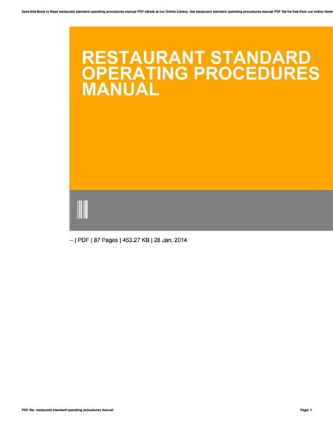 Best restaurant operating procedure manual Download EBook Sites No Sign Up - As we know, Download EBook is a great way to spend leisure time. Almost every month, there are new Ebook being released and there are numerous brand new Ebook as well.